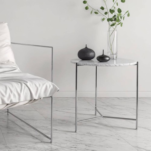 Sade ayak tasarımıyla mermeri ön plana çıkaran Cross serisi mermer yan sehpa evinize modern bir hava katar.